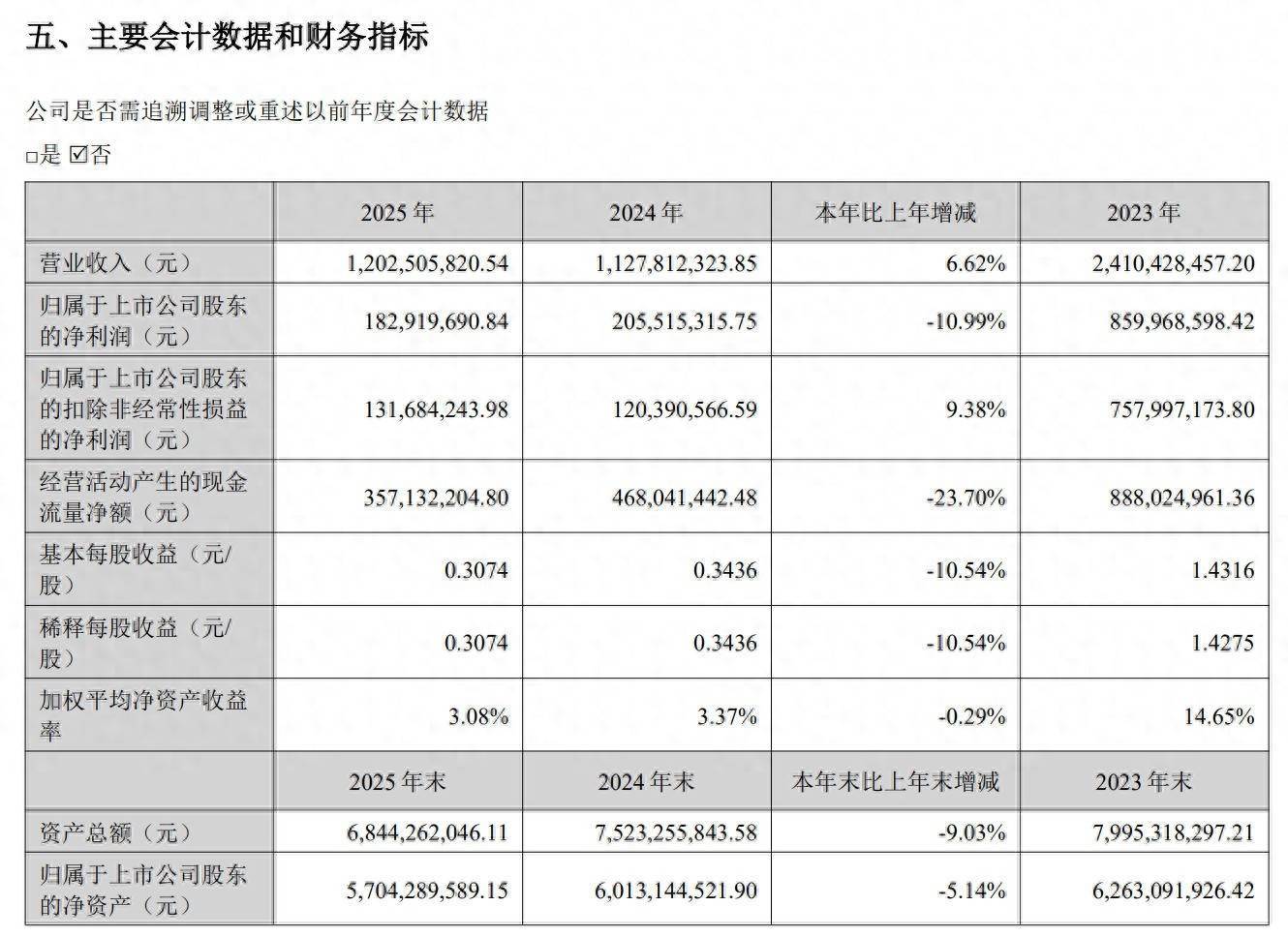 年报数据反映,该公司报告期内归母净利润下降10.99%,但扣非净利润增长9.38%。这个反差是如何产生的?答案在非经常性损益——2025年非经常性损益5123.54万元,较2024年的8512.47万元减少3388.93万元,其中金融资产处置及公允价值变动收益从8767.33万元降至5409.57万元。也就是说,公司主业其实在赚钱,但理财收益拖了后腿。